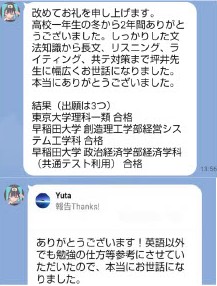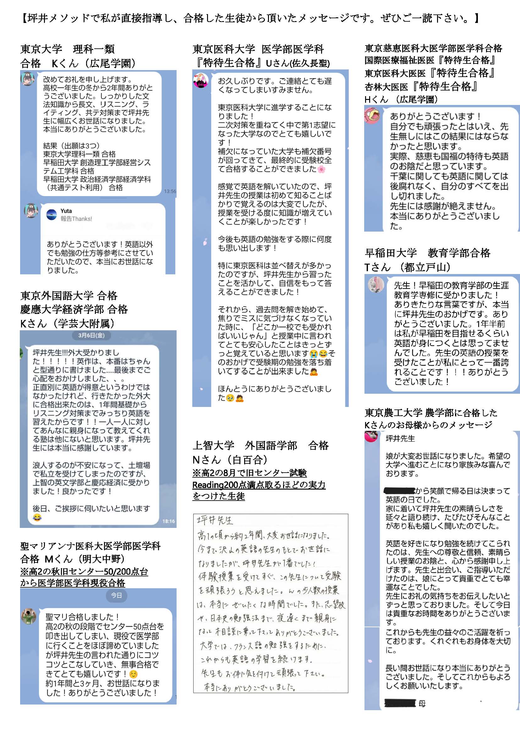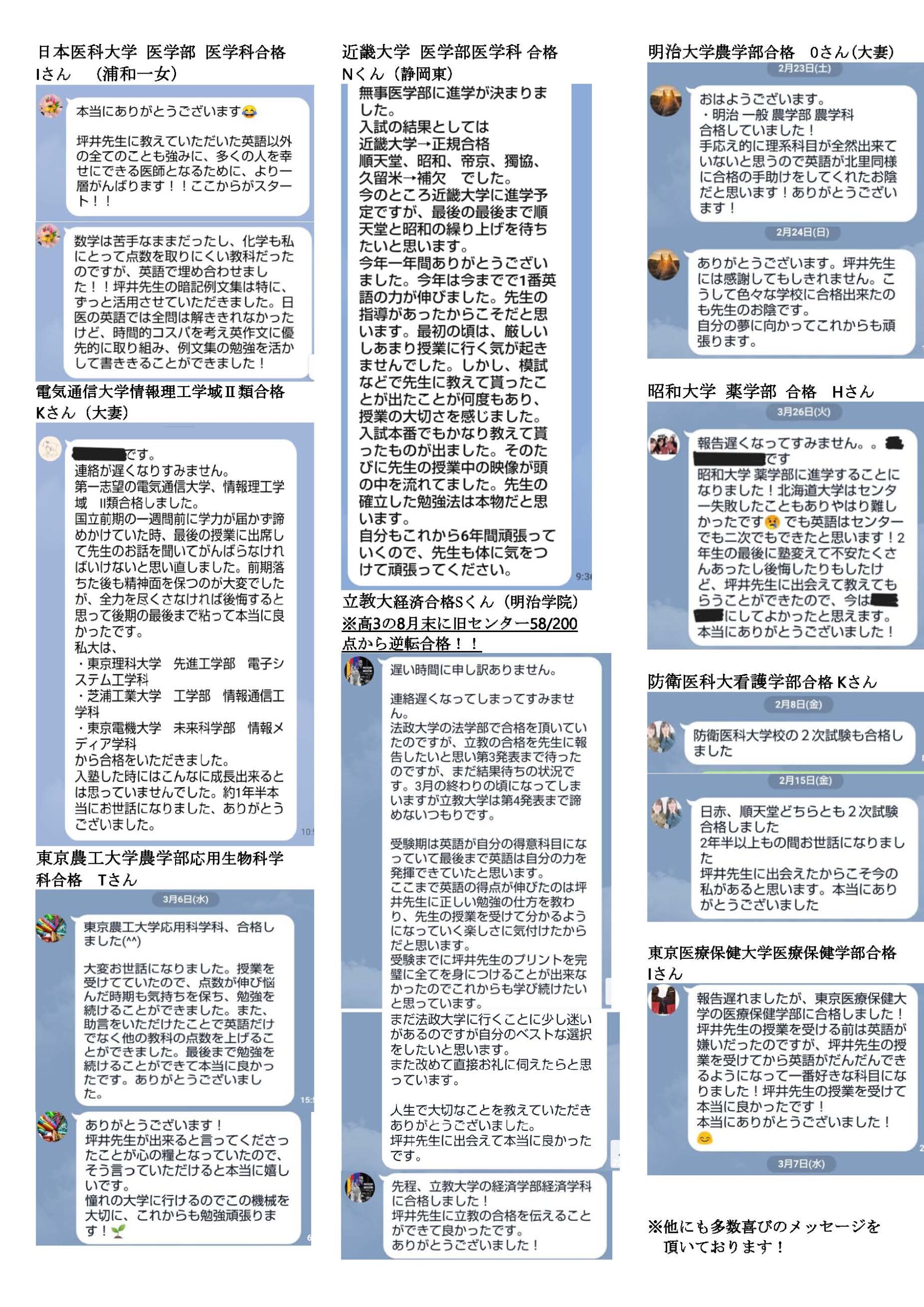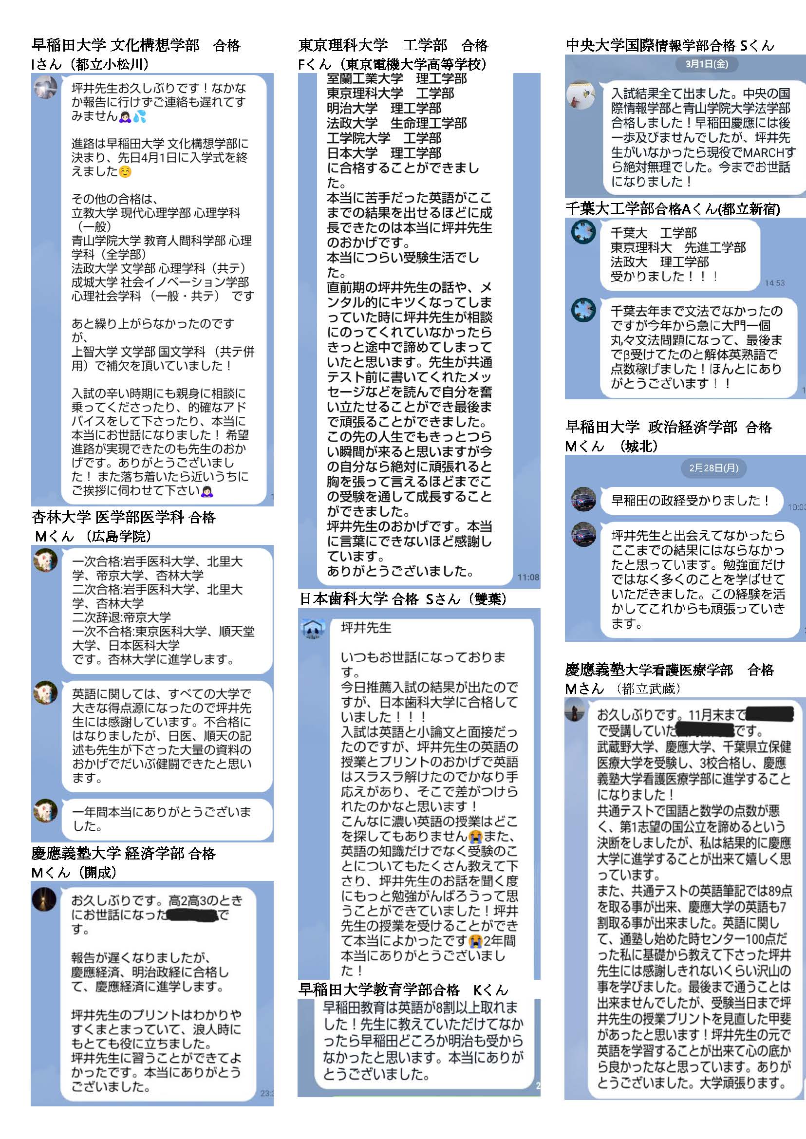 ※代表坪井が直接指導した生徒から頂いたメッセージの一部です。ぜひご覧下さい。